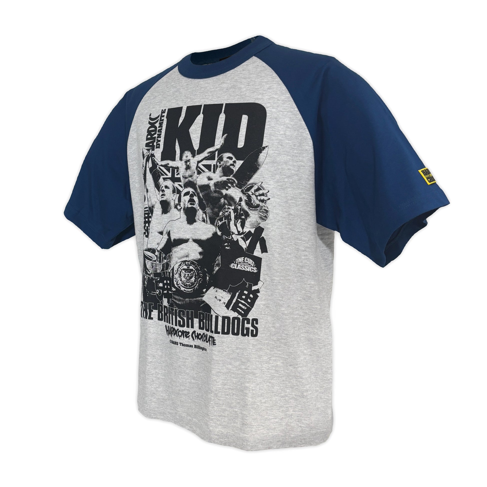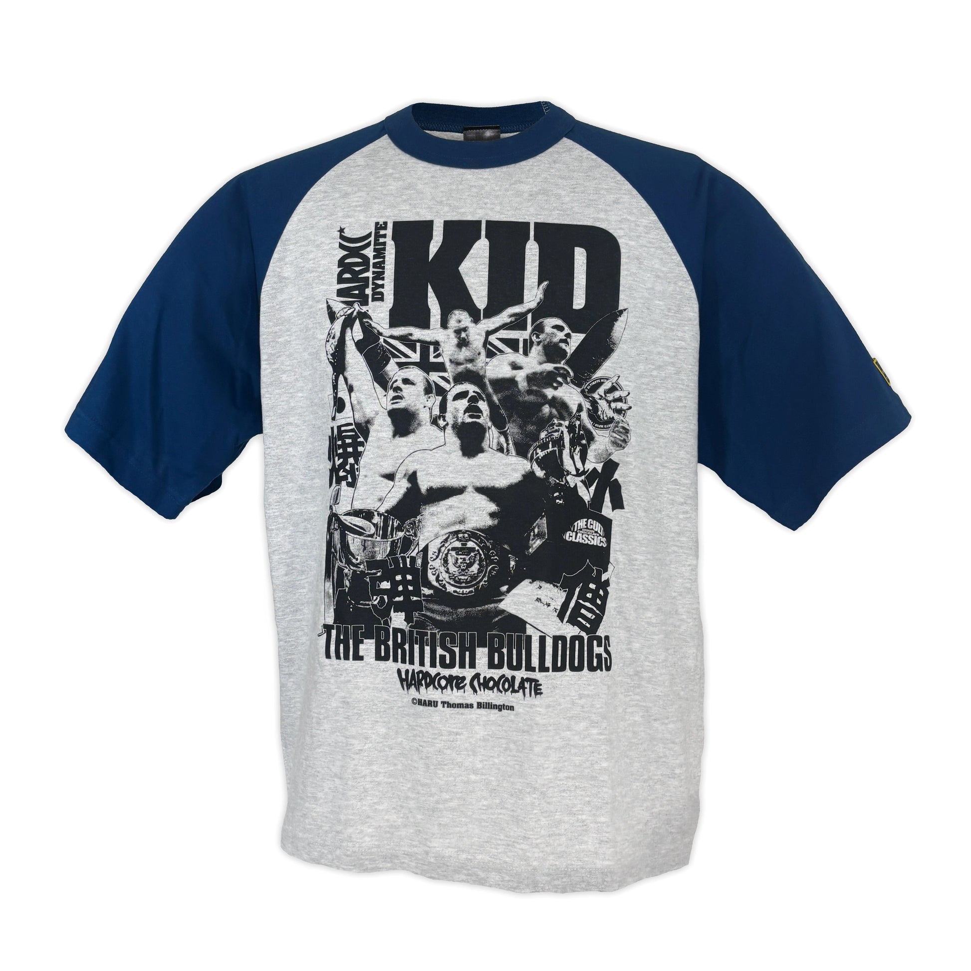 ダイナマイト・キッド・ジャパンツアーと称してコアチョコ流にデザイン!伝説の蔵前国技館三つ巴戦(ザ・コブラ、デイビーボーイ・スミス)を制しWWFジュニアヘビー級王座を獲得した姿、UK PUNKと題された純白のボディの一枚、そしてコラージュされた最高のラグラン!