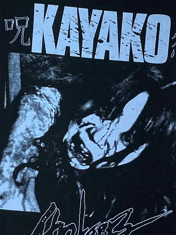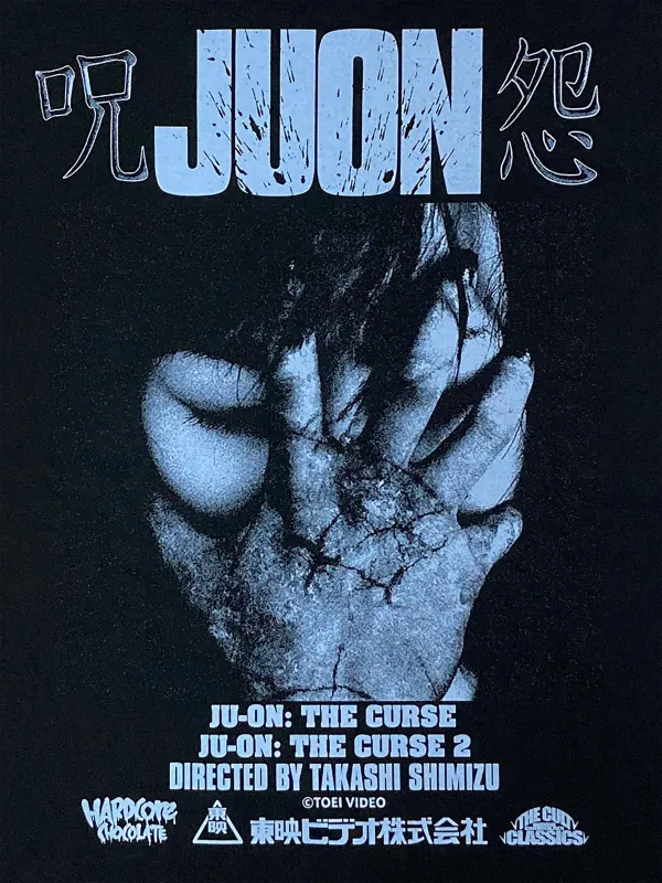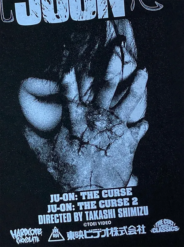 ハードコアチョコレートで実現した呪怨アパレルは、そのオリジナル版の恐怖を余す事無く伝えることを目的とし、世界で一番怖いTシャツ&パーカを作成。
