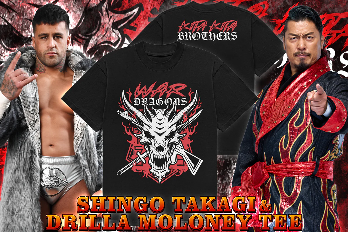 鷹木信悟選手とドリラ・モロニー選手のタッグTシャツが新発売!